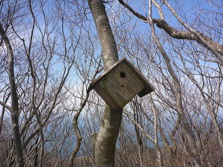 ヤマザクラの咲く山頂からは、正面に青い海に浮かぐ粟島、眼下には真島の集落の眺めが素晴らしい。ここで眺めを楽しみながら春の陽の下、ゆっくりと昼食をとりました。 |