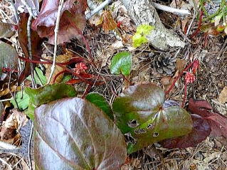 尾根のイワカガミ、まだつぼみです |
