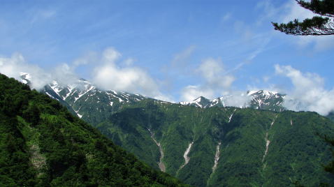 登山口近くの梅花皮荘付近を通過する頃には雨が上がり青空が見えてきた。