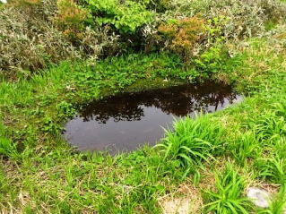 青雲岳の山頂部は広い草の平原状で、ささやかですが池塘もあります。池塘には水芭蕉や食虫植物が生えています。 |