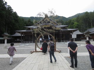 拝殿前の境内に設えられた茅の輪くぐりにコロナ退散と無病息災を祈願しました。 |