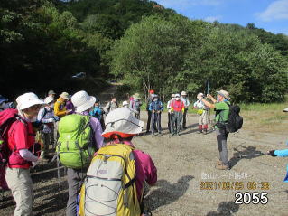 駐車場に8:18到着。登山準備を行い今日初めて参加された新人紹介を行い8:35登山開始。 |