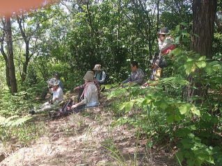 緑樹の里山2山を周遊した後は、近くにある火焔土器が発掘された馬高遺跡の広場で各自分散し木かげの下でランチタイム。