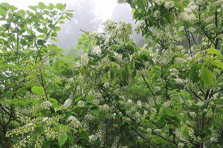 その時、山が見えてきたよ、と言われ、振り返ると、白い空間にぽっかりと2つの山の山頂だけが浮かんでいるのが見えました。ごつごつした山頂。しかし、またたく間に雲の中に消え、本格的に雨が降ってきました。