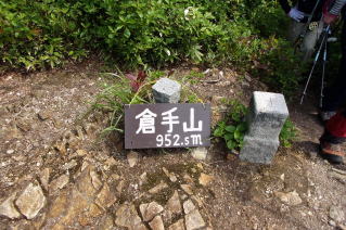 やがて、山頂直下の急登2ヶ所を登りきると倉手山山頂に到着。残雪期に比べるととても狭い山頂となる。