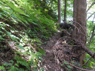 | 急な斜面を横に切った道で細く、崩れた場所 |