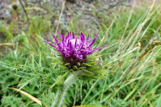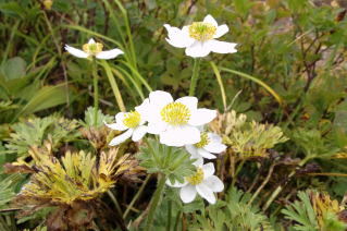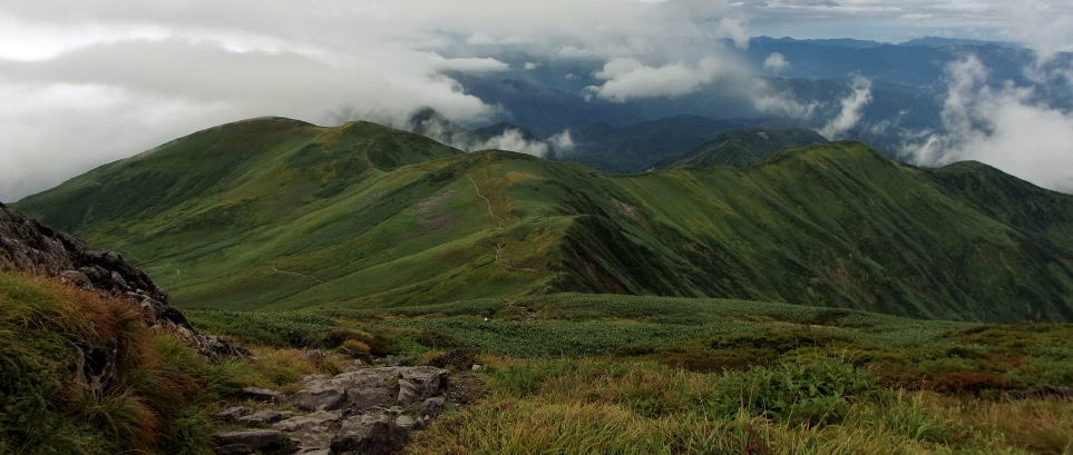 展望を楽しんだ後、眼下に見えるリフト上駅に向かって下山。このころからどんどん雲が切れ青空が広がってきた。 |