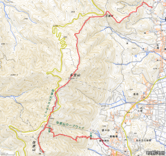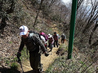 弥彦山を後に、昼食と集会場所である大平公園を目指す。次第に各コースの方々と合流したためやや混雑気味となる。