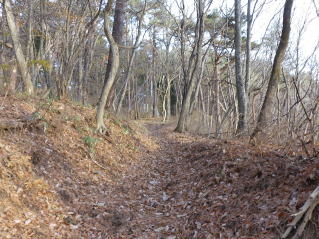 急坂は少ないのでとても歩きやすい、落ち葉を踏みしめ、周囲の雪をかぶった山々を見て、ゆっくり山頂を目指すことができる。 |
