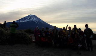 ここでも富士山をバックに集合写真 |