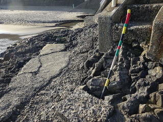 1番目の三角点魚見山に着きました。この近くで体調不良者が出て救助を頼みました。灯台登山口に救助隊が到着したので会のリーダーのEさんと私と救助隊を案内する為登山道を下り救助隊を案内しましたが搬送は無理との事で急遽県の防災ヘリで病院へ搬送されました。その時一緒したEリーダーも数年前悲しい事に急死してしまいました。