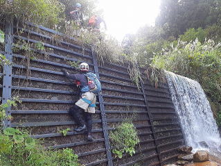 下りの堰堤はロープの練習も兼ねて、確保して降りました |