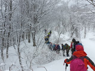 ブッシュが多くなり、なかなかの急騰、積雪も増え、膝まで浸かりながらのラッセルで、とても大変だったと思います。