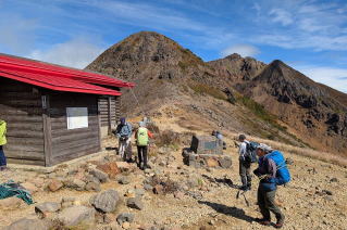 避難小屋がどんどん近付き到着。とても風が強く寒さを感じるのであまり長居をせず茶臼岳を目指した。