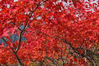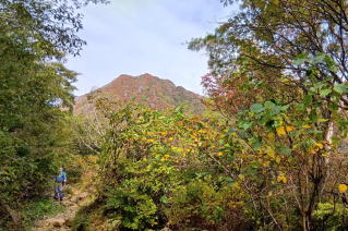 茶臼の中腹を回る登山道からは眼下に紅葉が美しい姥ヶ平が観えてくる。