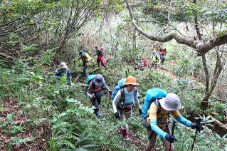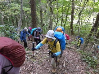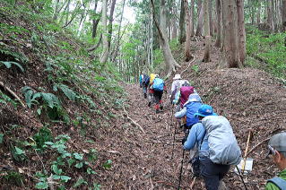林道が古道と同じ方向に切られており、林道と古道を交互に通る峠で、緩やかな傾斜で歩き易い。