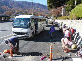 新潟駅から参加者37を乗せたマイクロバス3台が新潟駅6時過ぎ出発、新潟西ICから高速の北陸・関越道に乗り巻潟東ICで途中乗車する10名を乗せ、合計47名となる。新潟は曇りで、湯沢で少し晴れ間はあったが、関越トンネルを過ぎたらやはり快晴。月夜野ICで降り王城山登山口近くの駐車場へ10時03分到着。