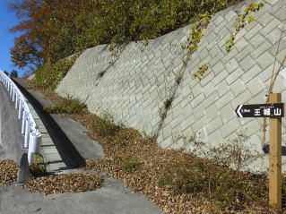一合目/王城山登山道入口 二合目/石尊下・押手沢 三合目/鳥屋坂 四合目/柴峰 五合目/傘木 六合目/炮碌岩(ほうろくいわ)七合目/舟窪 八合目/中棚尾根 九合目/お篭り岩 十合目/山頂尾根 で一合目、二合目、三合目は、登山口の違いで他の名前の道標がある。