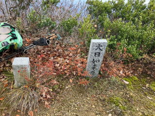 尾根歩きもすぐに終わり、またまた急下り、急登り。 ピーク!!と思ったら「だまかし坂」 でした。大日如来尊様に手をあわせて、最後の急騰を登りきると、 ついに 「鷲ヶ巣山」 山頂!!