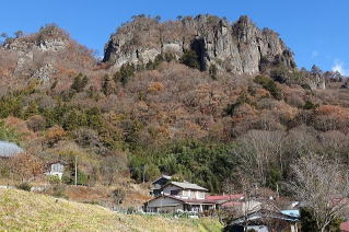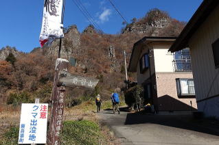 しばし集落の民家の間を通り、これから登る岩櫃山の全容を眺め、頂上の旗に心をときめかせました。