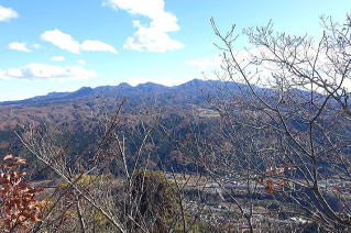 岩櫃山の山頂を振り返る、右奥に浅間山