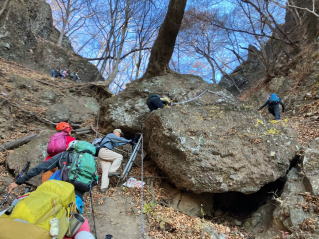 新潟駅(6:10)=北陸・関越道=月夜野IC=古谷登山口(9:20-40)…密岩登山口(9:55)…岩櫃山(10:45-11:20)…九合目(11:30-12:20)…天狗の蹴り上げ岩(12:40)…城址(13:10)…平沢登山口(13:30)=道の駅中山盆地(14:00-30)=往路=新潟駅(17:15)