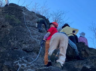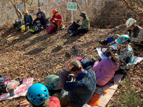 記念撮影を終えた人から順次降下する。九合目付近で昼食を摂り、その後岩場を下り城址を見学し下山した。