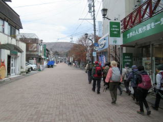 新潟から4時間少々バスに揺られて軽井沢に到着、シーズンオフで観光客もまばらな旧軽井沢銀座を登山姿の集団がスタートしました。