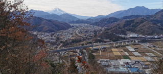 バスは順調に走っていたが鶴ヶ島ジャンクションから圏央道に入ったところから渋滞に巻き込まれ登山口に40分遅れで到着。遅れを戻すため少し早いペースで歩き出した。 25分ほど歩くとリニアカーの実験線と高速道、そして富士山が見える展望台があるので、それまでは休憩しませんと言っていた。