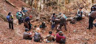 毎年12月にやっていた冬の富士を見る会山行。今年は九鬼山と三方分山に決めた。三方分山からパノラマ台までは少し長い行程なので、昼食なしで貫通することも事前に参加者に知らせていた。難易度も少し上げて参加者を募集したが、初日にいきなり38名の応募があった。でも宿も了解、中型バスへの変更もできたので、39名の大集団での決行となった。