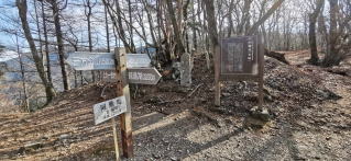 広い山頂広場で昼食、秀麗富岳十二景の一つ、山梨百名山でもあるが富士山の景色はイマイチだ。