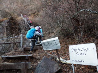 山荘直下の急階段を上る |