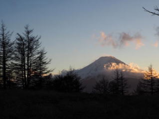 ピンク色に染まる富士山 |