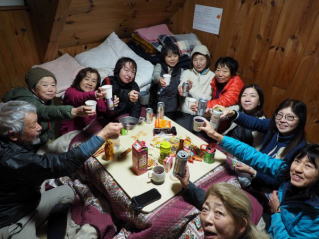 | 三ツ峠山荘前で集合写真 |