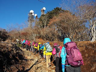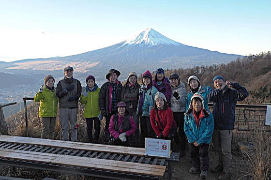 再度の三ツ峠山山頂で集合写真 |