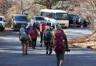 山荘(7:30)…開運山(1785m)…御巣鷹山(1775m)…三つ峠山登山口(10:00)=天下茶屋=武田神社参拝=やまなしフルーツ温泉(入浴)(14:00-45)=往路に同じ=新潟駅南口(19:30)