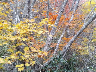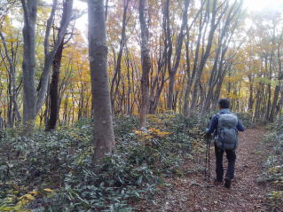 赤安山の分岐で3週間前オオスズメバチに5か所刺された仲間は未だ怖くて赤安山は通れないと言うのでスキー場コースを紅葉を見ながら下山しました。