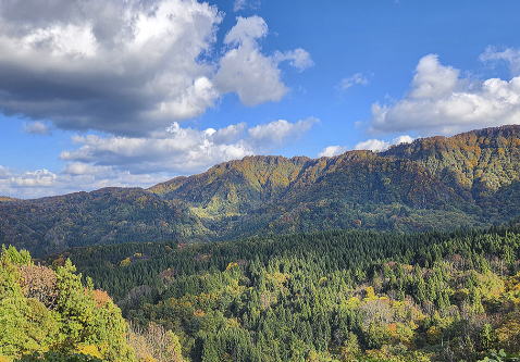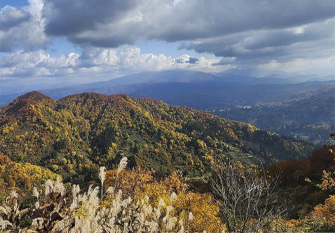 ・ちょうど黄葉が見ごろで、鋸山から桝形山の稜線上に広がるブナ林では見事な黄葉を楽しむことができました。