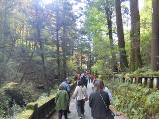 私たちも古い神社の歴史を知ると共に長い石段を一歩ずつ注意しながら参道を登り、そして降りる。湿った苔の参道はよそ見など出来ない。