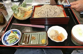随神門から階段30段昇り予約の蕎麦屋さんへ。歩いた後の手打蕎麦と秋野菜の天麩羅の味は抜群、とてもおいしかった。