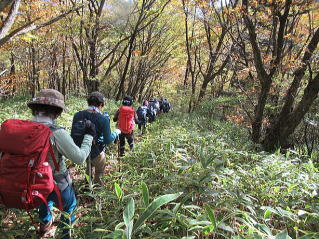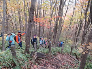全体集会は時間厳守です、短か目の休憩で下りにかかりますがこの先の紅葉は見事でした。