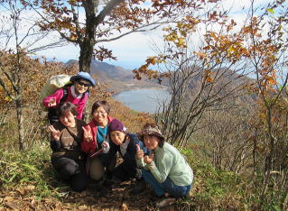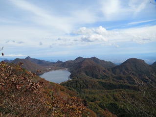 目の前に尖って見えるのは第2班が登っている榛名天狗山でしょうか、正に「山の麓の裾模様」が午後の日差しに輝いています。