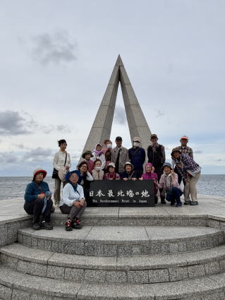 《9/20》バスは小型でしたが窓が大きく快適。銭函から石狩湾に下り、北海道「三秘岬」雄冬岬、暑寒別川ではサケの遡上を見、高倉健主演の「駅」ロケ地増毛へ。ここは、佐渡出身の豪商本間泰蔵が建てた、石造の呉服店や、最北の酒蔵「国稀」等歴史的建造物の宝庫。暑寒別岳が秋空に映えて、おびら鰊番屋等の鰊街道を北上、羽幌からは「天売」「焼尻」8月下中に校庭にクマがでた初山別村、サロベツ原野からは利尻山が姿を見せ、日本第2位の高さの灯台のあるノサップ岬、稚内港北防波堤ドームを左に見、宗谷岬へ。小生は3度目の宗谷岬。樺太がよく見え、感激(店の人に樺太であることを確認)。猿払村は日本最北の村で道内一の広さ、天然ホタテの水揚げは日本一。夕食はホタテ和膳。