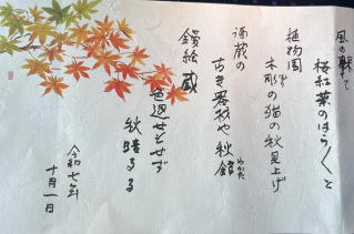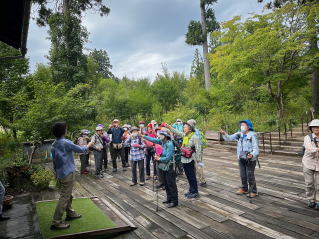 予定より早く雪国植物園に到着したが、雨は降っておらず、早速入園する。ちょうど「ヒガンバナ祭り」が開催中で、園の人とじゃんけんをして勝った人には、外山康雄先生の秋の山野草の絵はがきプレゼントといううれしい企画があり、皆さん大いに盛り上がった。私は早々に負けてしまったが、多くの方々が勝って、美しい絵はがきをゲット。(いいなぁ〜)