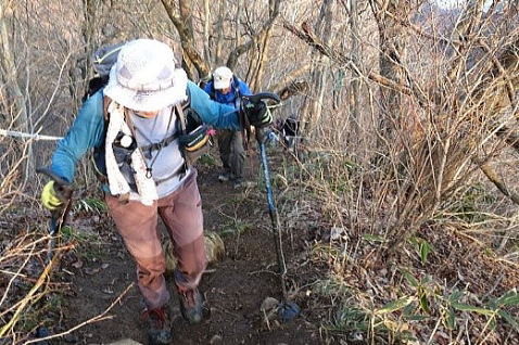 多宝山へ、ロープの急登を登る |