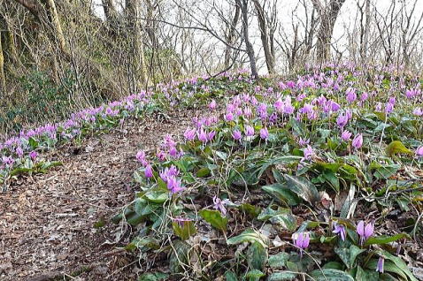 剣ヶ峰山頂、期待通りのカタクリが群生 |