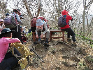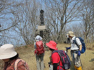頂上小屋の前で集合写真を撮り観音堂の広場に向かう。ここで昼食タイム。個人山行で来たという楽山会会員をあちこちに見かけた。