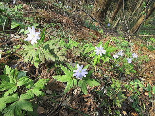 登山道の両脇は雪割草とカタクリの両方の花が同時に見られ丁度良い日に当たって嬉しい。