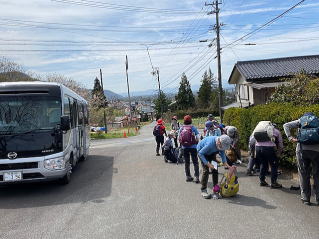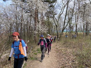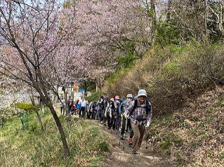 3月1日付けで定員の2倍の申し込みがあり、抽選を行って2回に分けて実施したその1回目です。昨年の同日は5合目までしか桜が開花していなかったのに今年は早くて山頂まで満開、高速から見ると麓から山頂にピンクの帯がかかっていてまさに桜の「昇り龍」でした。