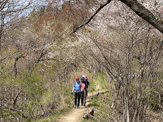 下山はミツバツツジやヤマザクラなどを愛でながら滑らないようにゆっくりと歩き無事に到着。